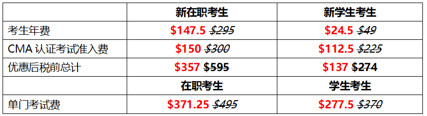 2026年1月5日至2月13日,对CMA新在职考生与新学生考生进行优惠活动,考生年费5折,CMA认证考试准入费5折,CMA考试费报名享受7.5折。
