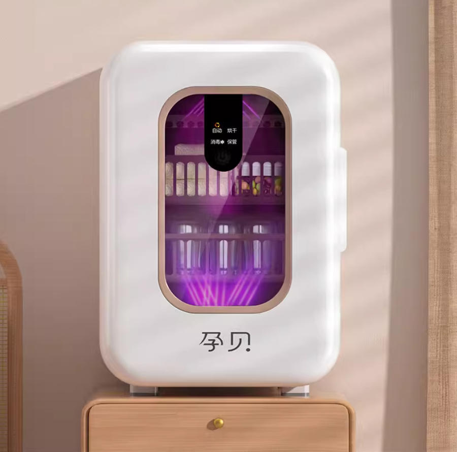 核心配置:母婴小家电经典品牌,产品务实。采用多面UVC灯珠或结合巴氏消毒技术;容量通常较大(如22L及以上),多层可调节置物架;支持快充或Type-C充电(部分便携式);操作简单。