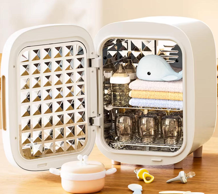 核心亮点:专利技术实现紫外光直接探入奶瓶、吸管杯内部靶向直射,物理根除传统消毒柜最大盲区;热风直喷瓶内,从最难干燥的瓶底螺纹开始工作,实现极速快烘;全不锈钢材质杜绝塑料高温老化风险,安全无毒一抹即净。