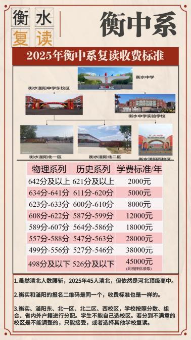 需要注意的是,复读招生滏阳中学和衡水实验中学报名系统和收费标准都是一样的,学校在复读招生完毕以后,按照学生选科组合、高考分数、户籍分类,将学生分配到不同校区。