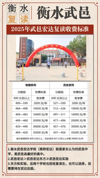 衡水武邑宏达学校适合350-500分左右的复读学生。