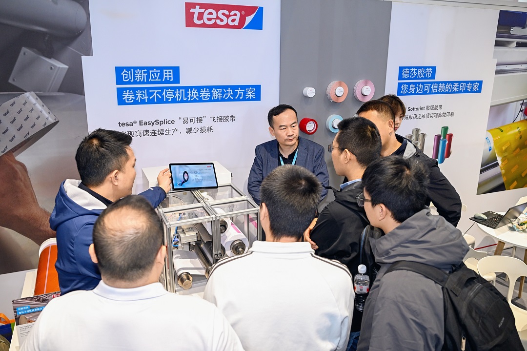 在为期三天的展会中,德莎通过动态演示与沉浸式互动,生动呈现了其胶带解决方案如何直击包装印刷产线的核心痛点,助力客户实现效率与质量的双重飞跃。