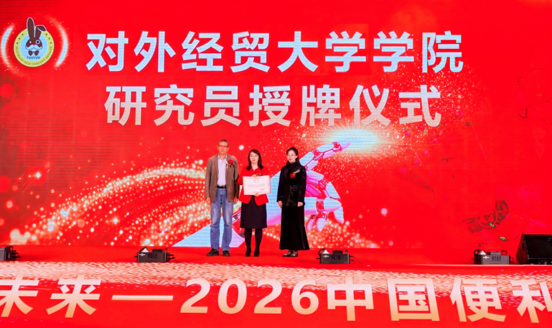 标准贯标仪式后,盛典后续环节陆续开展。国家市场监督管理总局信息中心原副主任、研究员王庆春先生,对外经济贸易大学国际数字商贸暨文化研究院薛莹辉老师共同登台,为兔悠网络科技(沈阳)有限公司创始人尹景怡女士颁发对外经济贸易大学国际数字商贸暨文化研究院市场商贸数字信息化研究员证书。此举意味着兔悠科技进一步参与数字信息化领域的学术研究与实践,推进产学研融合发展。未来,兔悠将结合自身便利店数智化运营经验与高校学术科研资源,推动数字零售技术、模式与标准的优化创新,实现“产、学、研、用”协同发展,培养行业专业人才,助力零售行业升级。