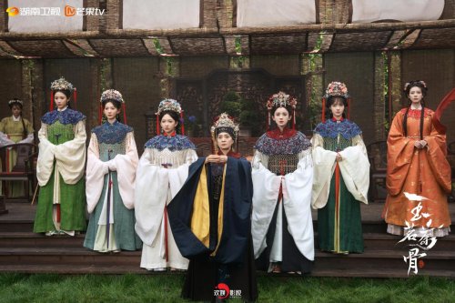 此外,《玉茗茶骨》中无处不在的传统文化、非遗技艺、东方韵味,在社交媒体上持续发酵,吸引传统文化的爱好者长期关注、深度解读。其中,陆江来的波浪纹发冠、荔枝纹半壁分别对应中国传统服饰纹样中的“自由勇敢”“利子吉利”等美好象征;荣善宝为代表的荣氏一族女眷所佩戴的“卧兔儿”,即皮草所制抹额,也与沈从文所著《中国古代服饰研究》中的图样相符;荣家老夫人所执装饰有茶花纹样的手杖、祭茶礼所挂悬幡、只在荣善宝房门前搁置的铜鹤等道具背后的文化出处均在细心观众的梳理中与文化典籍一一对应。荣氏一族女性掌家的渊源出自历史上真实存在的“东女国”,“断梅”意为梅雨季结束、源自晋代《风土记》“梅熟时雨,谓之梅雨”的节气等细节考据,尽显创作者的文化底蕴。传统文化中“冷知识”的复热,更彰显《玉茗茶骨》为弘扬文化精粹付出的笨功夫和巧心思。