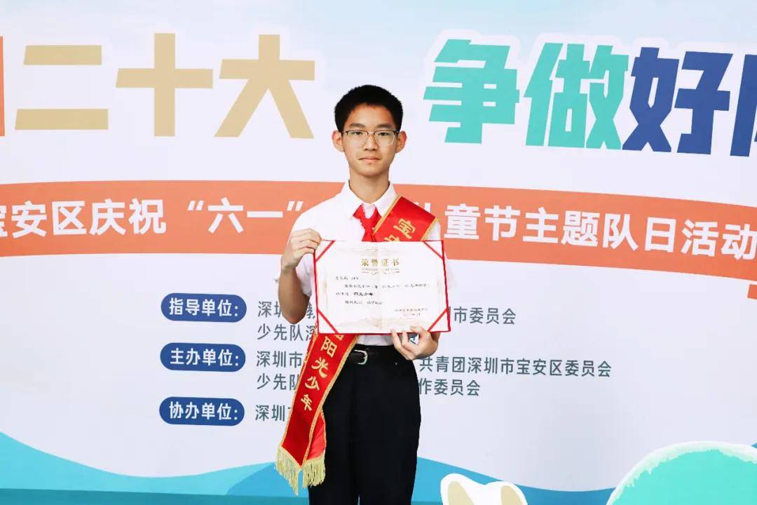 ↑ 宝安区“第十一届阳光少年”常家瑞 ↑