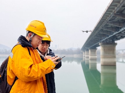 “往左边再来一点……。”谢润民手把手教赵冬骏用无人机检查河流中间桥墩状态。“以前要到桥底下面去检查,现在使用无人机检查,不仅提升作业效率和安全系数,也实实在在改变作业模式。”谢润民有感而发。