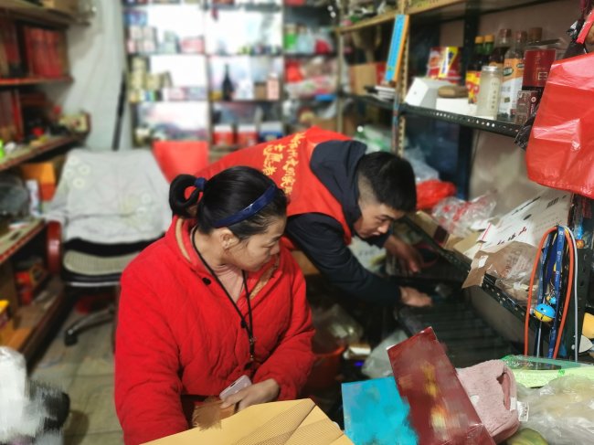(图为:客户经理帮郭大姐整理柜台)