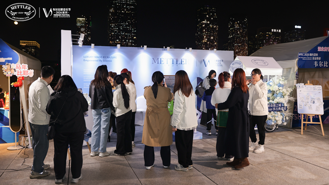 (Mettler1929品牌体验区人气高涨,观众络绎不绝前来打卡。瑞士奢护理念与古典音乐艺术在此交汇,共同演绎一场完整而细腻的感官之旅)