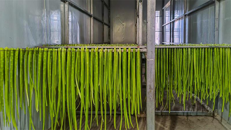 农户利用闲置烤房对初加工贡菜进行烘烤。摄/孙红