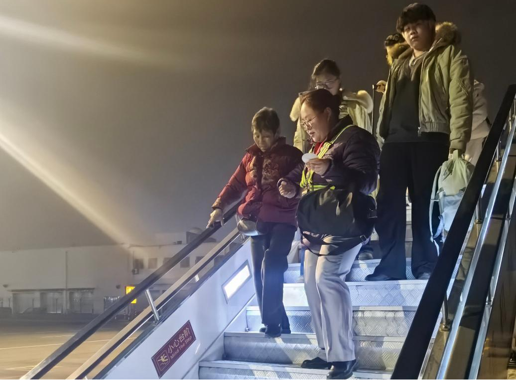 飞机缓缓降落在大连周水子国际机场。飞机客舱门打开,刘茜倩第一个走进来。她看到老人脸色不太好,还捂着嘴,赶紧递上一杯温水,轻轻扶住老人。“阿姨,我是来接您的,别怕,跟我走。”