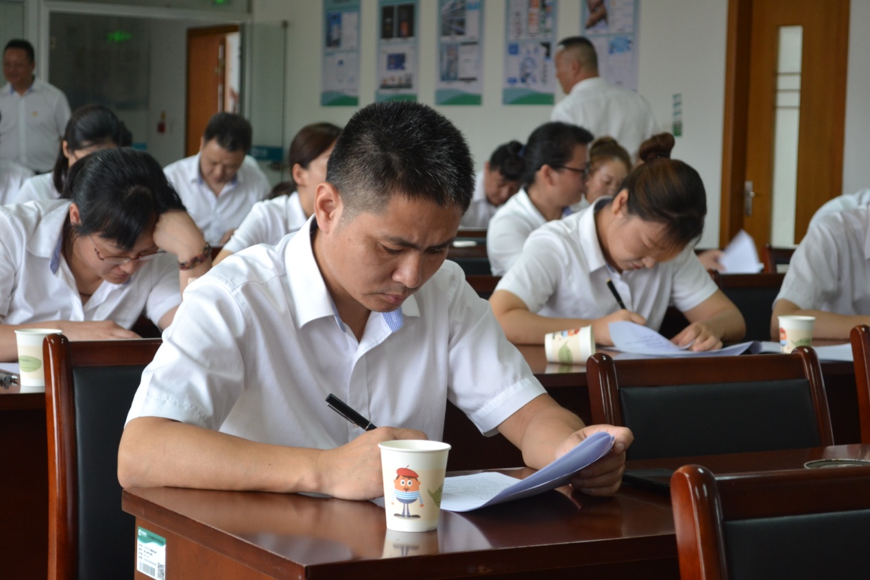 图为客户经理在认真参与应知应会知识竞赛。