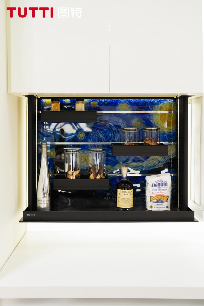 名画系列电动升降机,梵高星空与蒙德里安悄然对望,手扫感应间,收纳升华为家中最温柔的艺术角落。