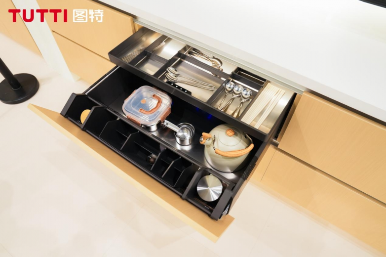 悦藏系列·悦享抽,28°黄金倾角,取物一目了然;阻尼缓冲一触即停,让收纳成为悦享。
