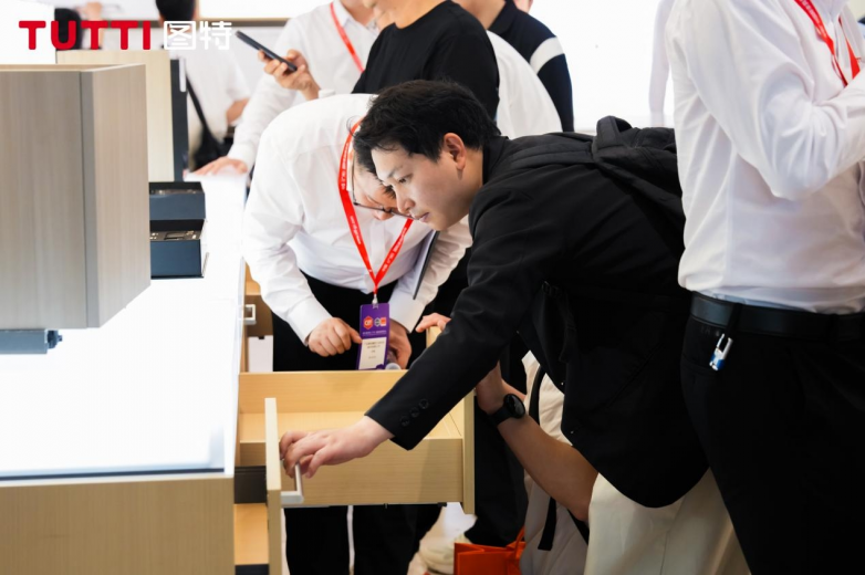 展位布局涵盖基础五金区、收纳系统区、滑轮系统区及八大微场景,每一处都是图特精工实力与空间美学的交汇点。家具制造商、定制企业、设计师、客商、等专业观众纷至沓来、络绎不绝,意向客户登记数量远超预期。人潮所向,正是行业对精工价值的最直接回应。