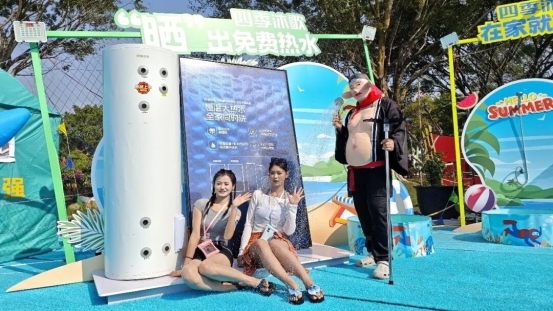 本次嘉年华,四季沐歌以太阳能热泵科技为核心,将第五代热水器劲龙星、水易方系列轻商热水系统等明星产品融入服务场景,用澎湃水量、全年稳定制热、智能舒适的产品优势,为热水驿站提供源源不断的恒温热水,让泼水不再是“透心凉”的挑战,而是身心舒展的春日礼遇,真正实现“欢乐不降温,温暖不打烊”。从清晨到日暮,驿站内人流不息,游客们在体验热水科技的同时,打卡互动、参与趣味游戏,让科技赋能民俗的理念深入人心。