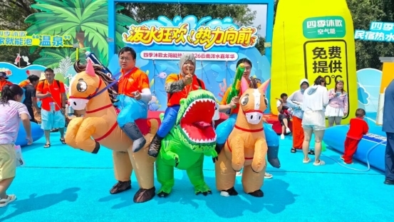 互动取水、泼水挑战赛轮番上演,COS天团全程陪拍、恐龙战队劲爆出击、产品打卡互动趣味十足,大幅提升游客停留时间与参与度,让每一位参与者都能沉浸式感受热水科技的魅力。