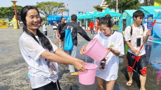 泼水节万人狂欢现场,四季沐歌太阳能热泵热水驿站、温暖驿站、能量补给站全程在线!给足游客安全感,泼水狂欢直接暖到心坎里。