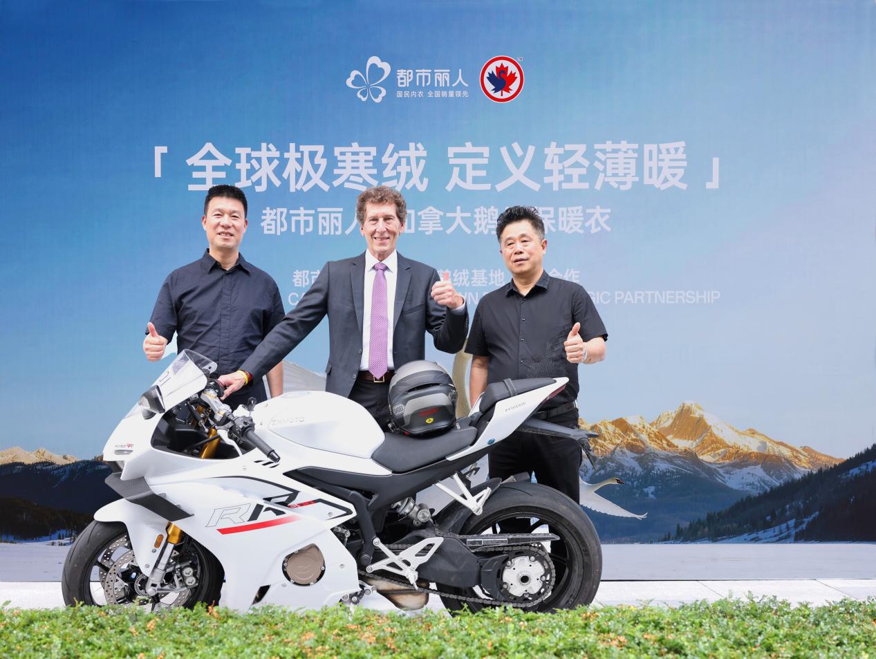 都市丽人集团将一辆张雪机车赠与Bryan Pryde,以冠军礼遇致敬匠心精神,实现冠军内衣、冠军机车、冠军鹅绒三大冠军IP的跨界融合。