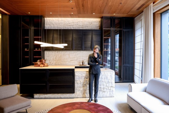 品牌核心产品由SACUCCI 首席产品创意总监David Dolcini主导设计。出生于米兰木作世家的 David Dolcini 先生,拥有跨领域的长期设计实践,对材料、结构与细节之间的关系有着深刻而系统的理解。自 2021 年合作确立以来,在 David Dolcini 先生的创意主导之下,SACUCCI 首席公馆经历了一次具有战略意义的转型——从一家以木作与定制为核心的企业,逐步转向整体室内项目的全宅木作系统交付。此次新展厅的启幕,正是这一转型被完整实现的物理宣言:木作不再只是被观看的产品,而成为空间的基础系统,参与比例、秩序、功能与审美关系的共同生成。