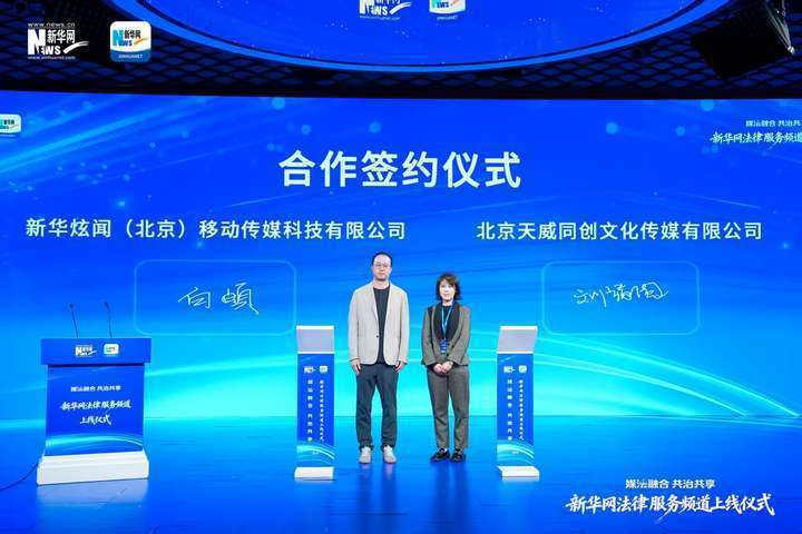 新华网客户端总经理胥斌在发言中表示,作为中央重点新闻门户网站,新华网将持续聚焦法治中国建设,权威传递法治建设强音,凝聚全社会法治思想共识,为全面依法治国、建设更高水平法治中国营造良好舆论氛围。同时,依托全球传播优势,向世界讲好中国法治故事,展现中国特色社会主义法治道路自信。新华网法律服务频道的上线,标志着平台在助力法治中国、共建共治共享法治文明征程上迈出坚实一步。未来,频道将立足平台资源与传播优势,打造集权威信息发布、专业政策解读、便捷法律服务、多元互动参与于一体的国家级法治传播服务阵地,持续强化专业能力、提升服务效能,营造崇尚法治、遵守规则、尊重契约、维护公正的社会环境,为弘扬社会主义法治精神、提升全民法治素养贡献力量。